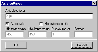 The scale will be converted into a legible dimension with this factor. It will be added to the axis name. The display factor can be noted as 1e-9 instead of 0.000000001; this is equal to 10-9. Alternatively, one can turn off "automatic title modification" and change e.g. the unit.