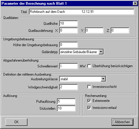 Die Zahl der Stützstellen für den Immissionsverlauf ist hier einzugeben. Ein Wert von 25 sollte für die meisten Anwendungen reichen.