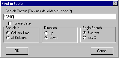 The search pattern can include * or ? as wildcard. The questionmark is used as placeholder for one character and the asterisk is used for multiple characters. The cells in the table are tested, if they are equal to the pattern.